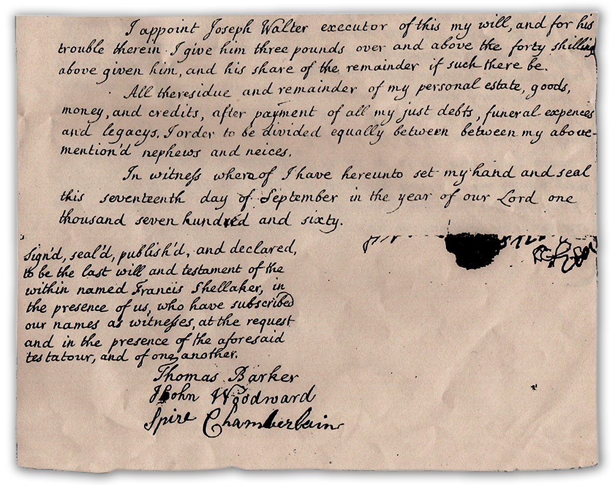 The Family of Francis Shelacres at the time he wrote his Will – 7th September 1760