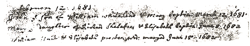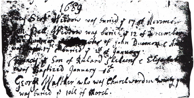 1689 – “Francis ye Son of Richard Shelacres & Elizabeth baptised January 16th”