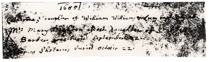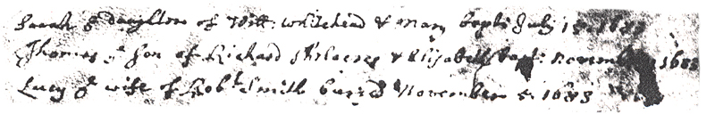 1684 – “Elizabeth ye Daughter of Richard Shelacres & Elizabeth baptised December 29th 1684”