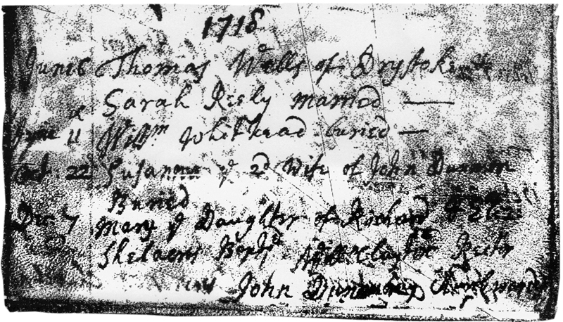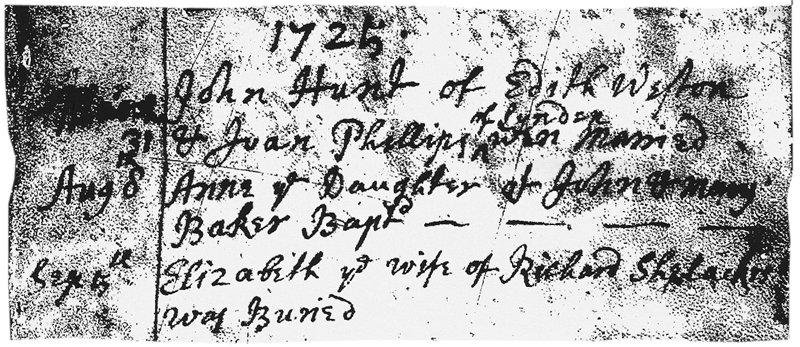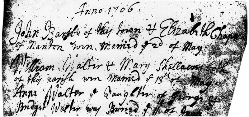 1706 – “William Walter and Mary Shelacres both of this parish were married ye 13th of May.”