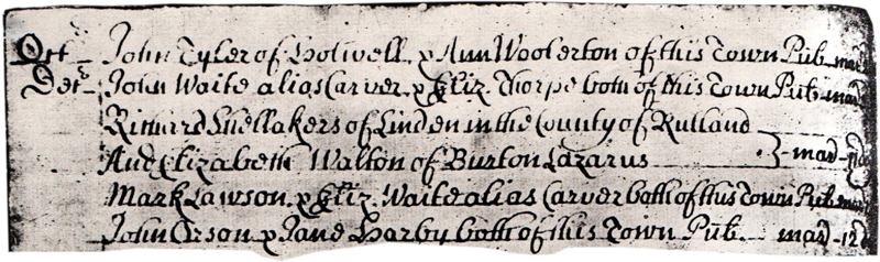 1715 – “Richard Shellakers of Linden in the County of Rutland and Elizabeth Walton of Burton Lazarus 11 Dec.”