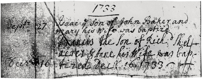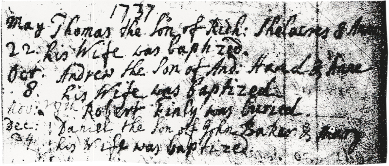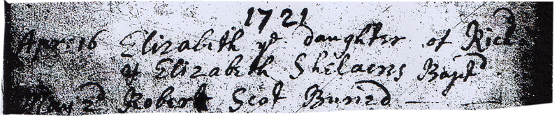 1721 – ” Apr 16 – Elizabeth ye Daughter of Rich’d & Elizabeth Shelacres Bapt’d”