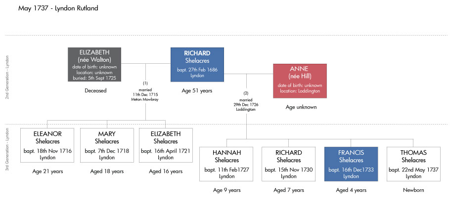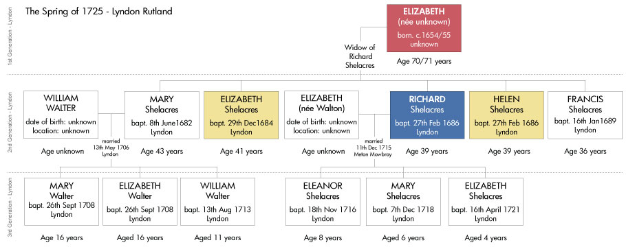 And although the Francis Shelacres who was baptised on 16th Jan 1689 was still living and possibly his sister Mary Walter (née Shelacres), I will now move this narrative on to the Third Generation of the family who lived in the small Rutland village of Lyndon.