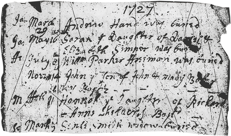 1727 – “Feb 11- Hannah ye Daughter of Richard & Anne Shelacres Bapt’d”
