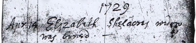 1729 – “Apr 14 Elizabeth Shelacres was buried.”