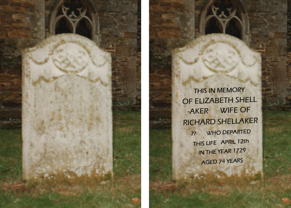 And as with her husband, her name is spelt in the parish records as ‘Shelacres‘ but the stonemason has carved ‘Shellaker‘ – even through he has bizarrely split the surname over two lines.