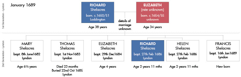 1689 – “The Family of Richard Shelacres & Elizabeth at the time of the birth of their son Francis”