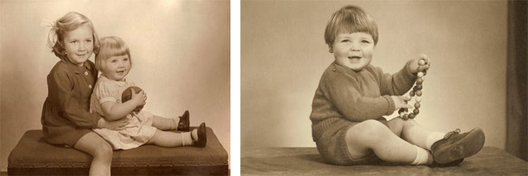 Nellie’s grandchildren – On the far left Hazel with her sister Beryl. On the right is Nellie’s grandson Timothy.