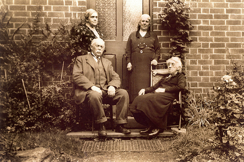 The photograph was taken around that time as her brother William was to die two months later in October 1946. Polly’s husband Frank Brown, who was at one time was a professional photographer, may have taken the picture or maybe it was Nellie Brown herself behind the camera. At the back is Polly Brown (née Shellaker) and the left with Emma Geary (née Shellaker) on the right. Seated is Sarah Shellaker with her brother William Shellaker.