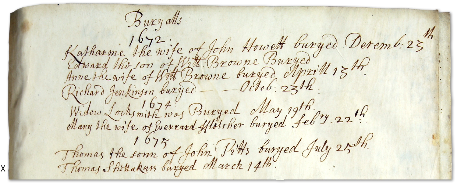 1675 – “Thomas Shellakars buryed March 14th.”