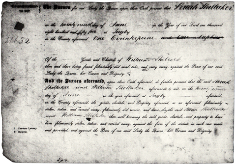 Of the Goods and Chattels of William Shilcock then and there being found feloniously did steal, take and carry away, against the Peace of our said Lady the Queen, her Crown and Dignity.