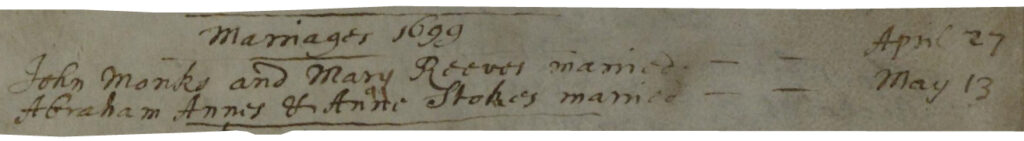 To locate their wedding I need to search the local villages for a wedding of a Abraham Annis to a woman named Anne around the year 1700…