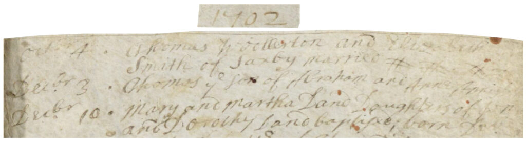Dec 3 1702 – The baptism of Thomas Annis the son of Abraham and Anne Annis