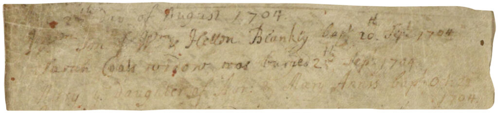 Dec 3 1704 – The baptism of Mary Annis the daughter of Abraham and Anne Annis